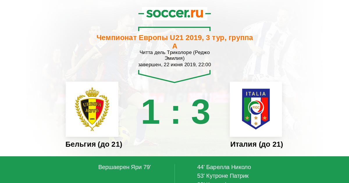 Бельгия (до 21) - Италия (до 21): обзор матча 22 июня 2019