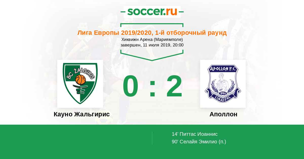 Кауно Жальгирис - Аполлон: обзор матча 11 июля 2019