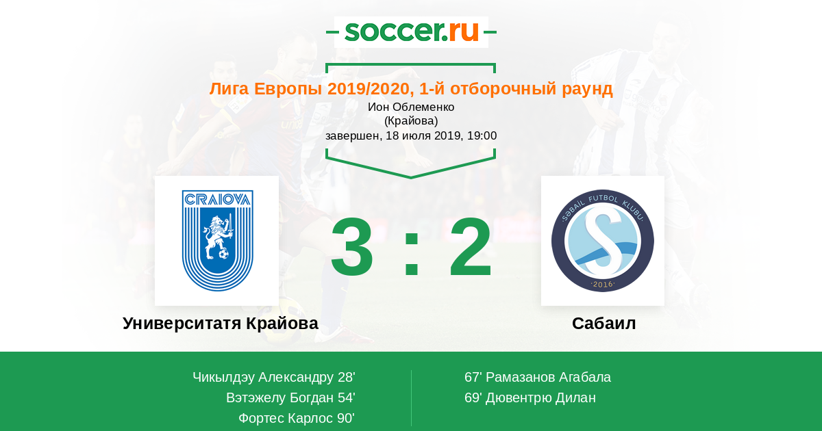 Университатя Крайова - Сабаил: обзор матча 18 июля 2019