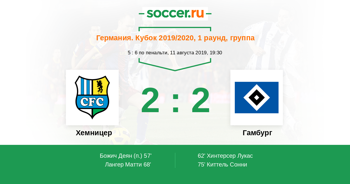 Хемницер - Гамбург: обзор матча 11 августа 2019