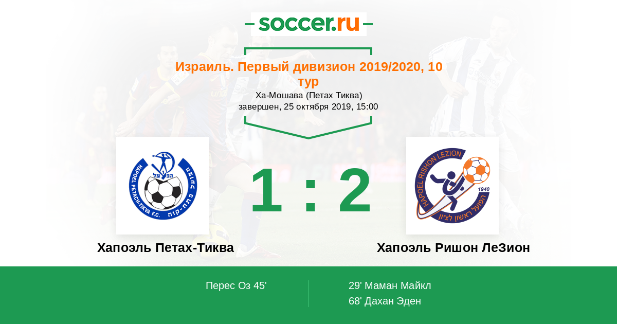 Хапоэль Петах-Тиква - Хапоэль Ришон ЛеЗион: обзор матча 25 октября 2019
