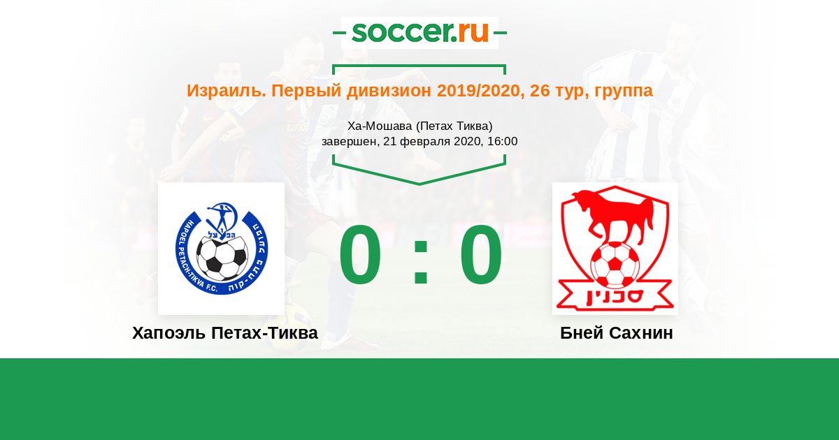 Хапоэль Петах-Тиква - Бней Сахнин: обзор матча 21 февраля 2020