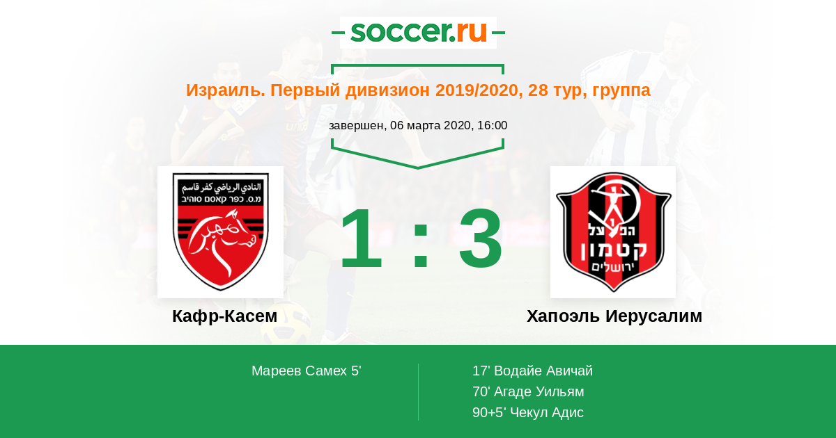 Кафр-Касем - Хапоэль Иерусалим: обзор матча 6 марта 2020