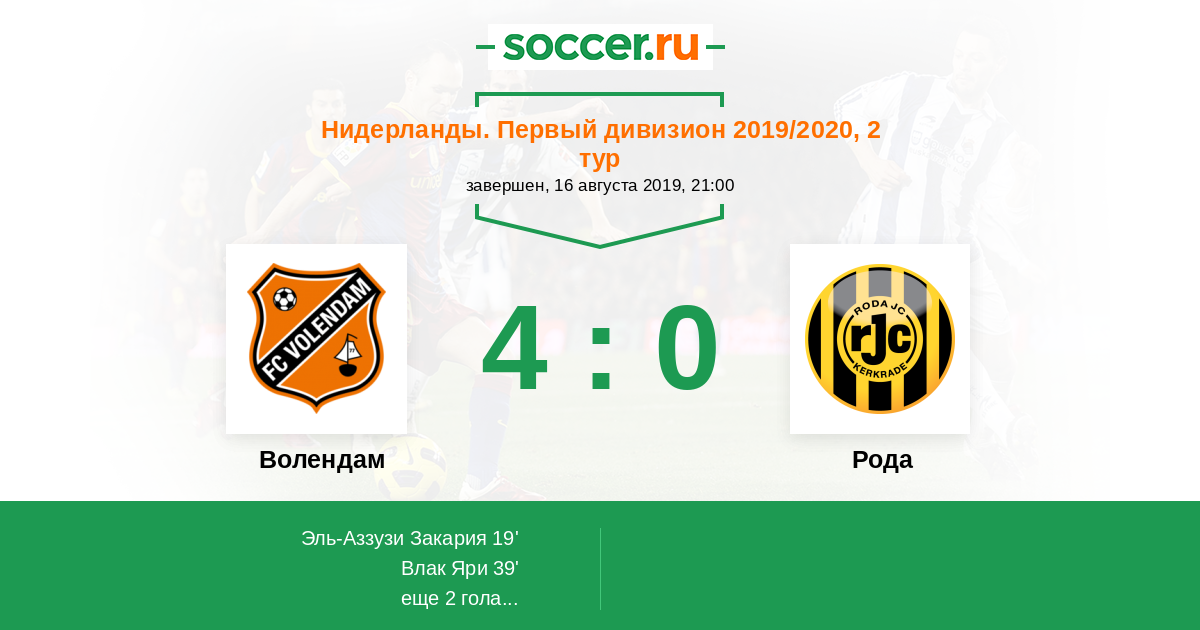 Волендам - Рода: обзор матча 16 августа 2019