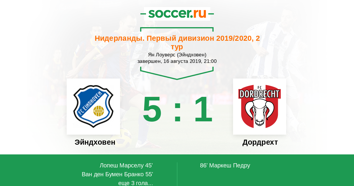 Эйндховен - Дордрехт: обзор матча 16 августа 2019