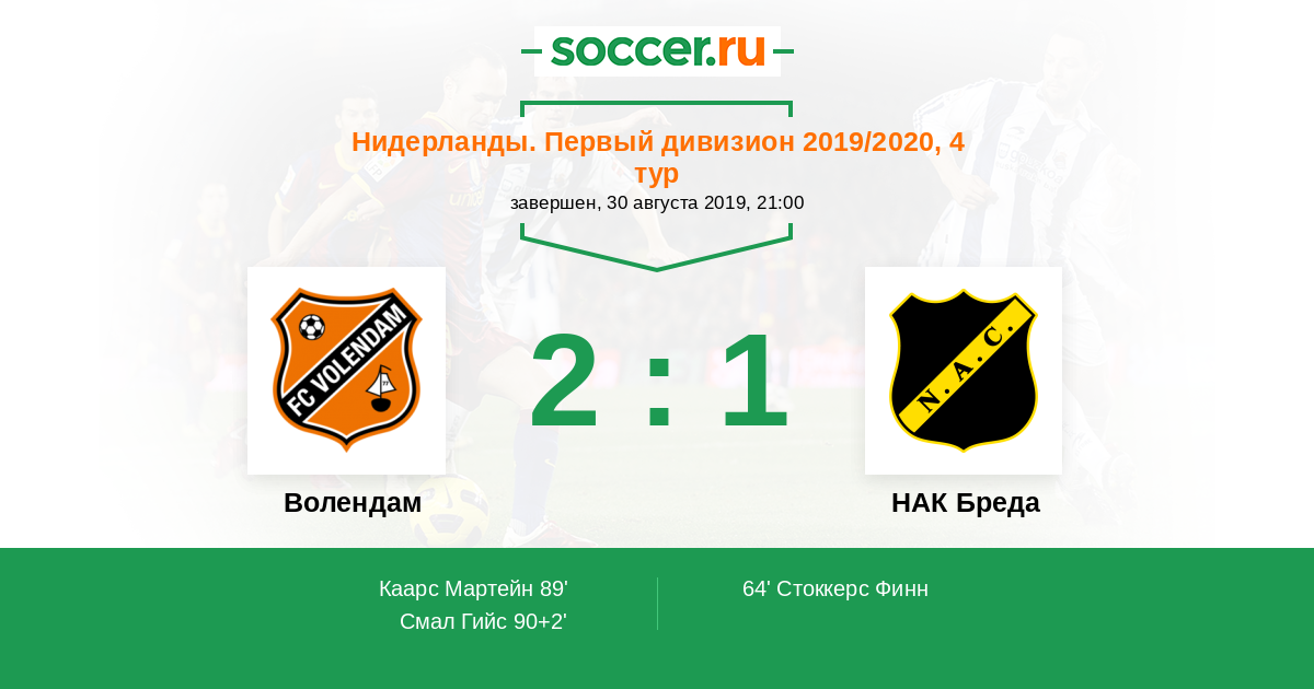 Волендам - НАК Бреда: обзор матча 30 августа 2019
