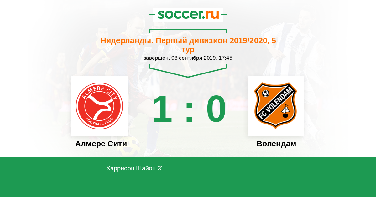 Алмере Сити - Волендам: обзор матча 8 сентября 2019