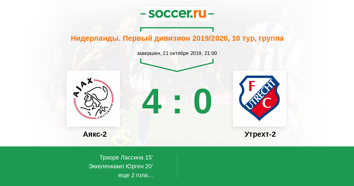 Аякс-2 - Утрехт-2: обзор матча 21 октября 2019