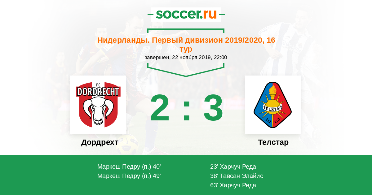 Дордрехт - Телстар: обзор матча 22 ноября 2019