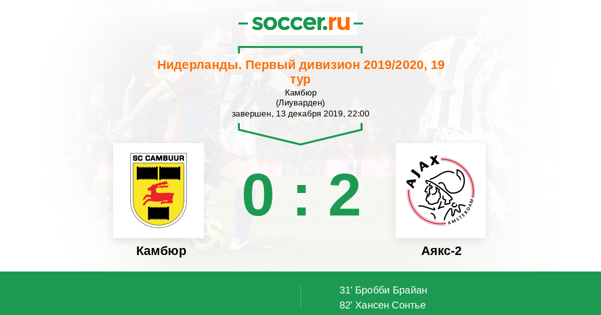 Камбюр - Аякс-2: обзор матча 13 декабря 2019
