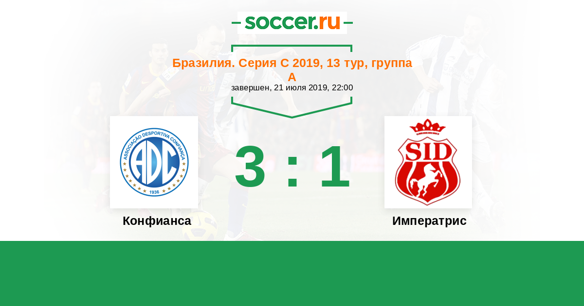 Конфианса - Императрис: обзор матча 21 июля 2019