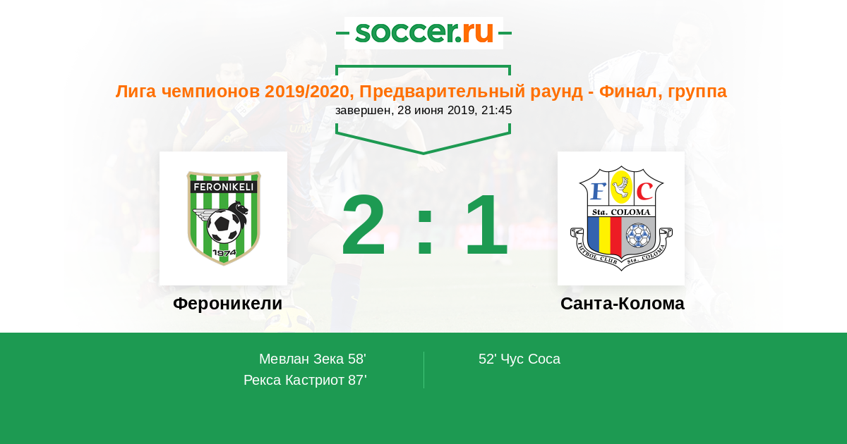 Фероникели - Санта-Колома: обзор матча 28 июня 2019