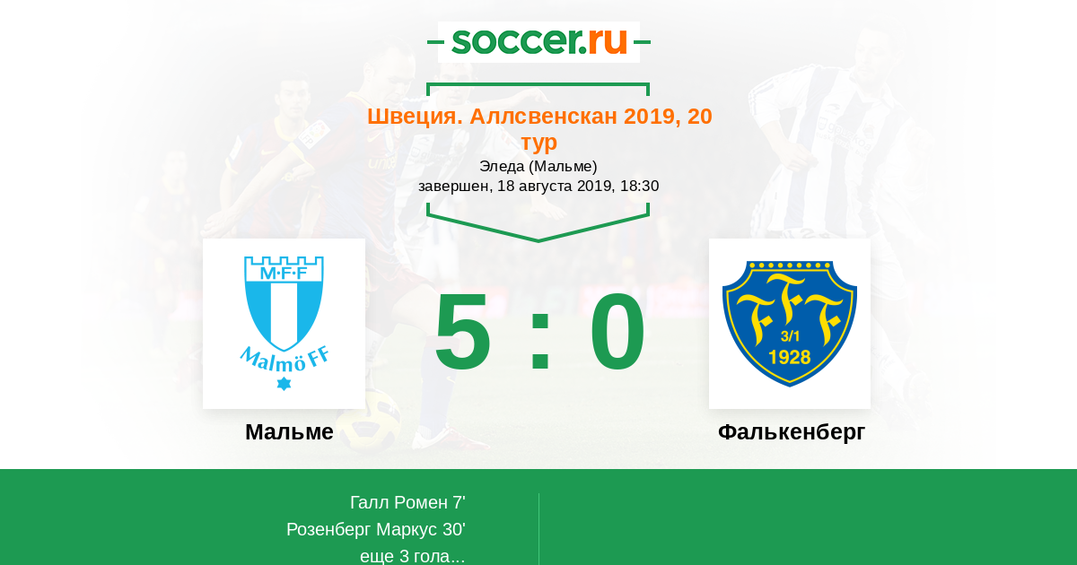 Мальме - Фалькенберг: обзор матча 18 августа 2019