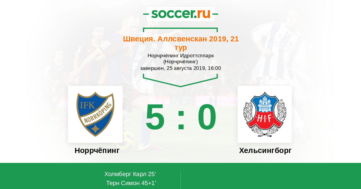 Норрчёпинг - Хельсингборг: обзор матча 25 августа 2019