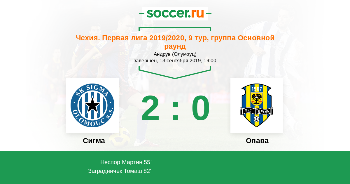 Сигма - Опава: обзор матча 13 сентября 2019