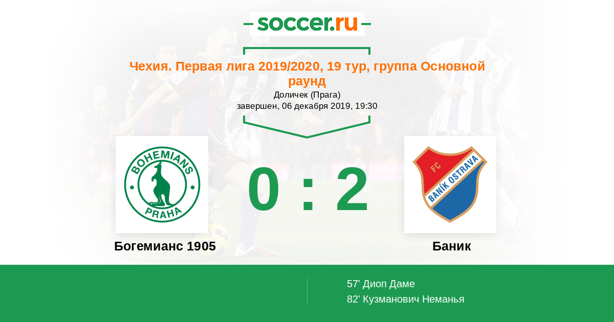 Богемианс 1905 - Баник: обзор матча 6 декабря 2019