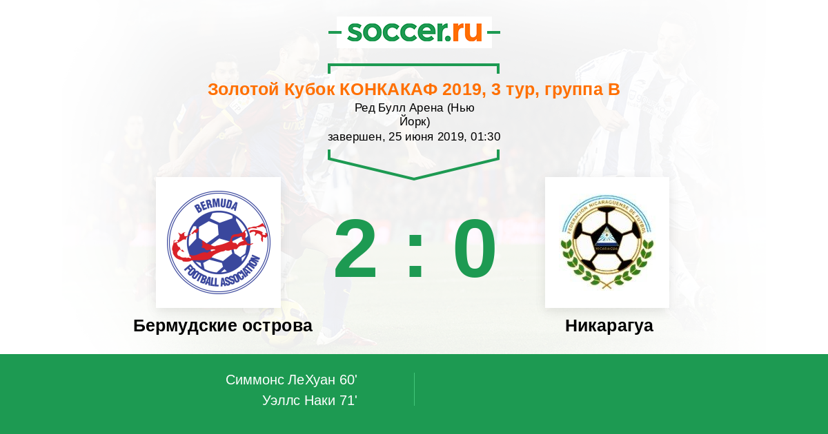 Бермудские острова - Никарагуа: обзор матча 25 июня 2019