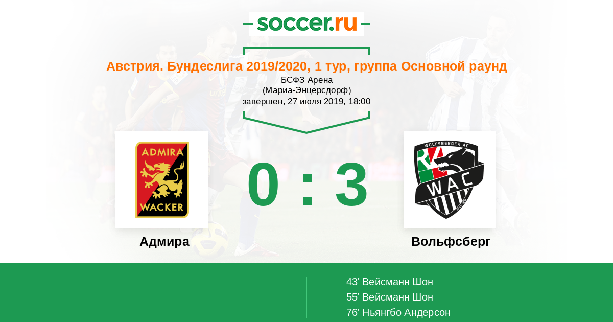 Адмира - Вольфсберг: обзор матча 27 июля 2019