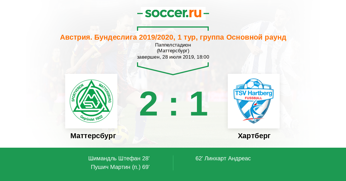 Маттерсбург - Хартберг: обзор матча 28 июля 2019