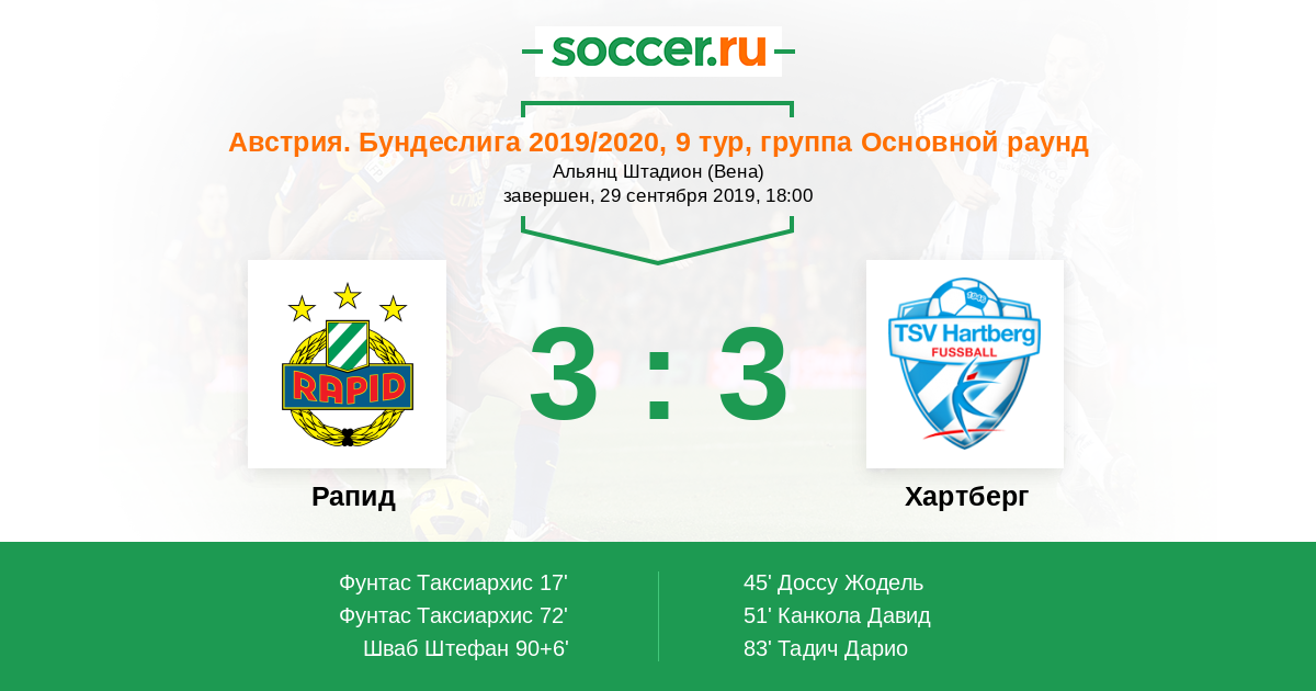 Рапид - Хартберг: обзор матча 29 сентября 2019