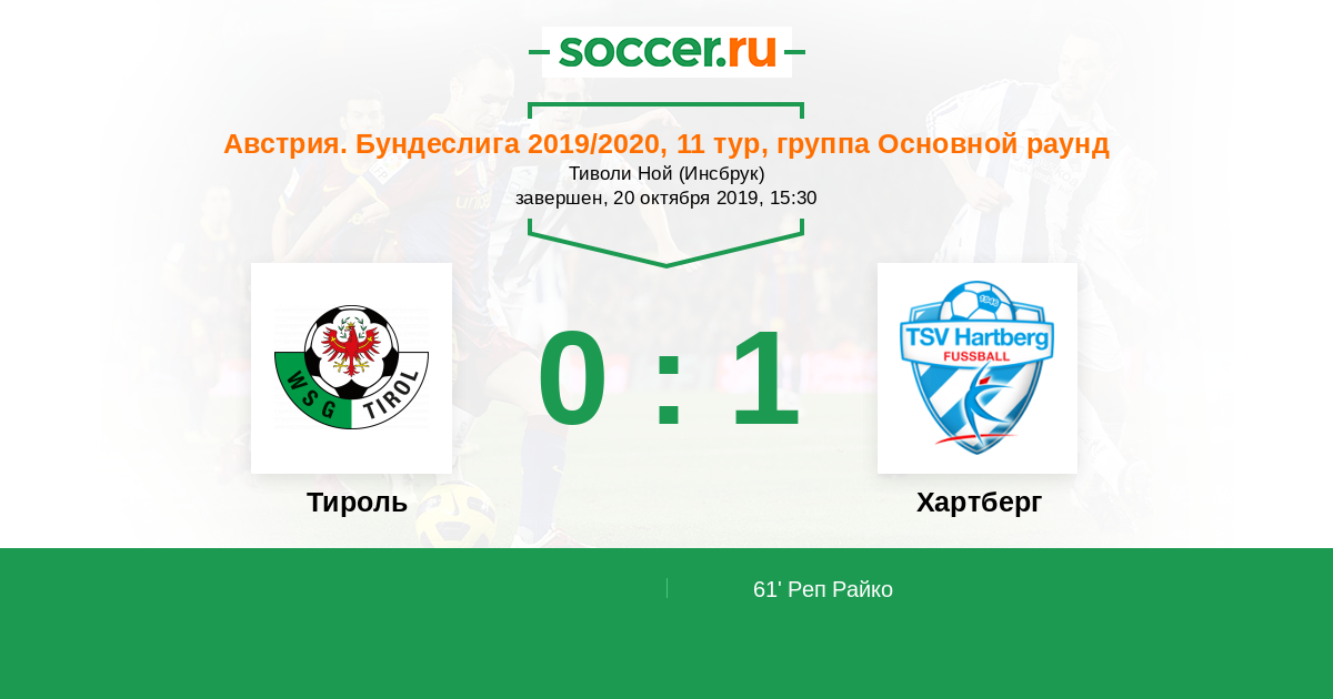 Тироль - Хартберг: обзор матча 20 октября 2019
