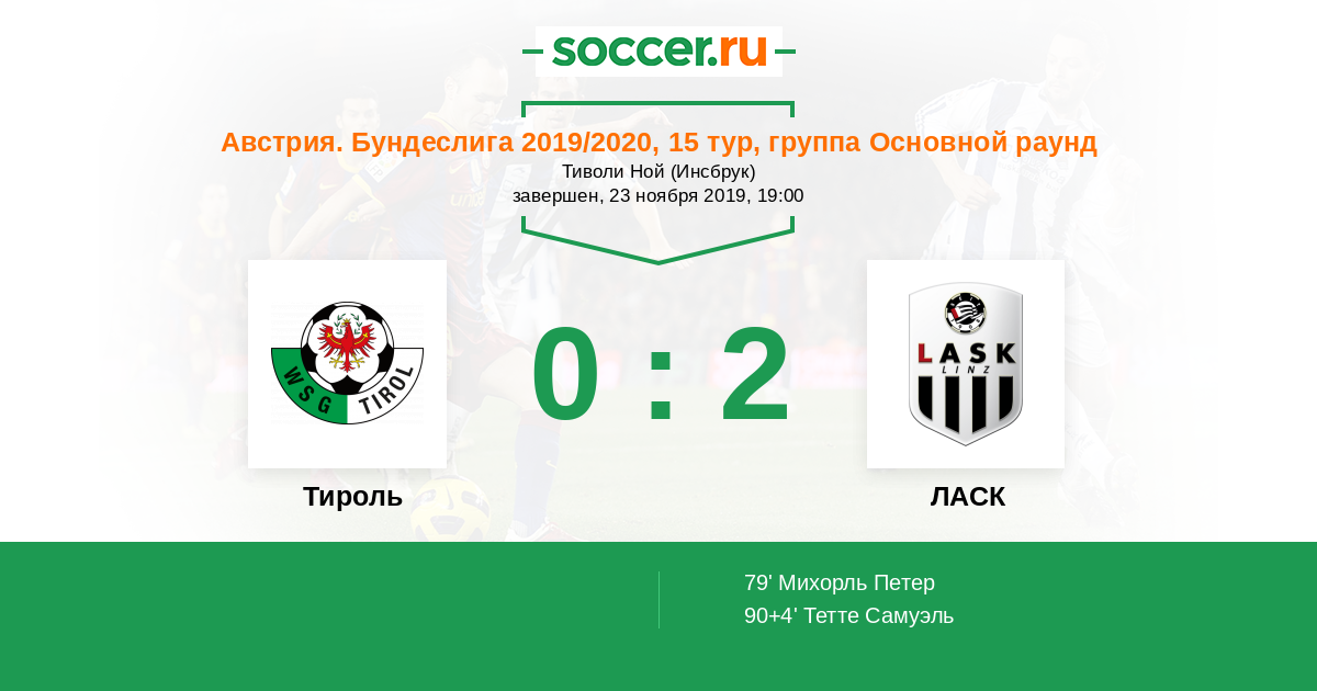 Тироль - ЛАСК: обзор матча 23 ноября 2019