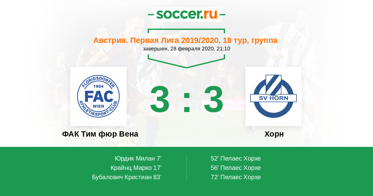 ФАК Тим фюр Вена - Хорн: обзор матча 28 февраля 2020