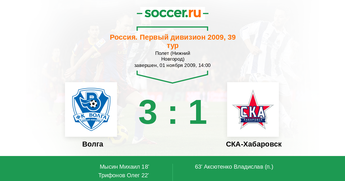 Волга - СКА-Энергия: обзор матча 1 ноября 2009