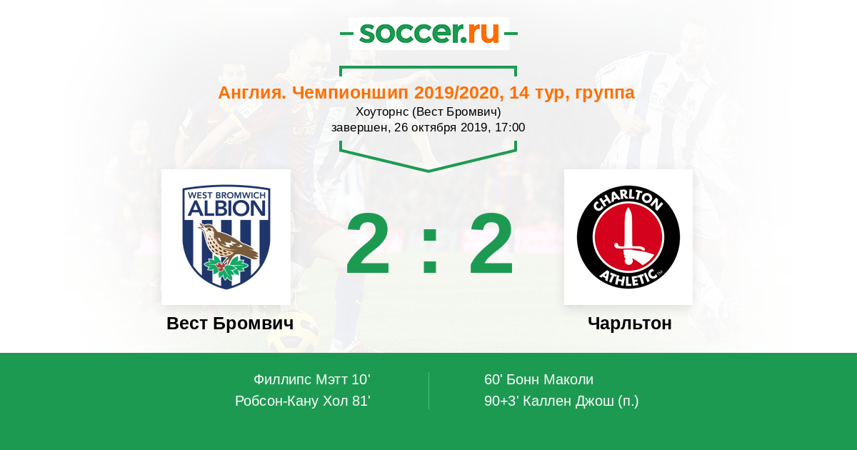 Вест Бромвич - Чарльтон: обзор матча 26 октября 2019