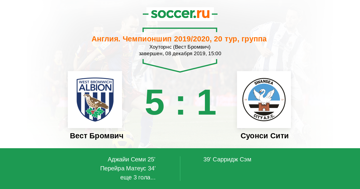 Вест Бромвич - Суонси Сити: обзор матча 8 декабря 2019