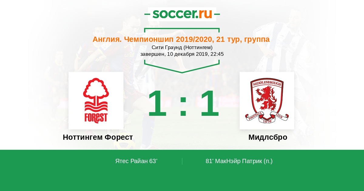 Ноттингем Форест - Мидлсбро: обзор матча 10 декабря 2019