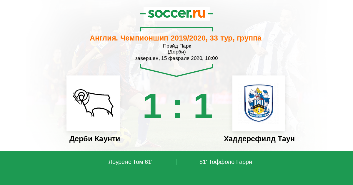 Дерби Каунти - Хаддерсфилд Таун: обзор матча 15 февраля 2020