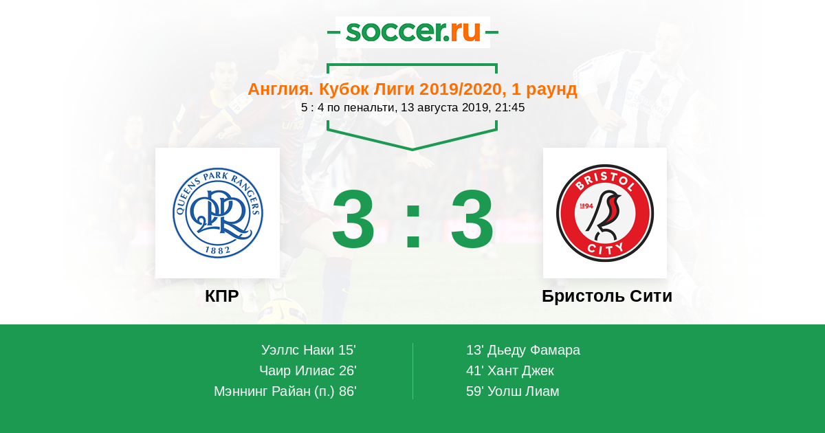 КПР - Бристоль Сити: обзор матча 13 августа 2019