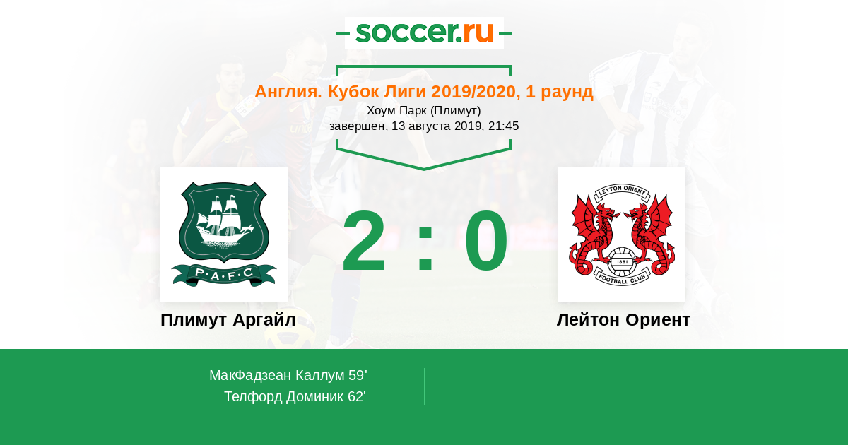 Плимут Аргайл - Лейтон Ориент: обзор матча 13 августа 2019