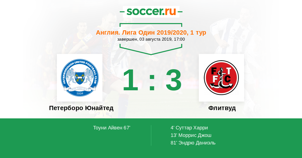 Петерборо Юнайтед - Флитвуд: обзор матча 3 августа 2019