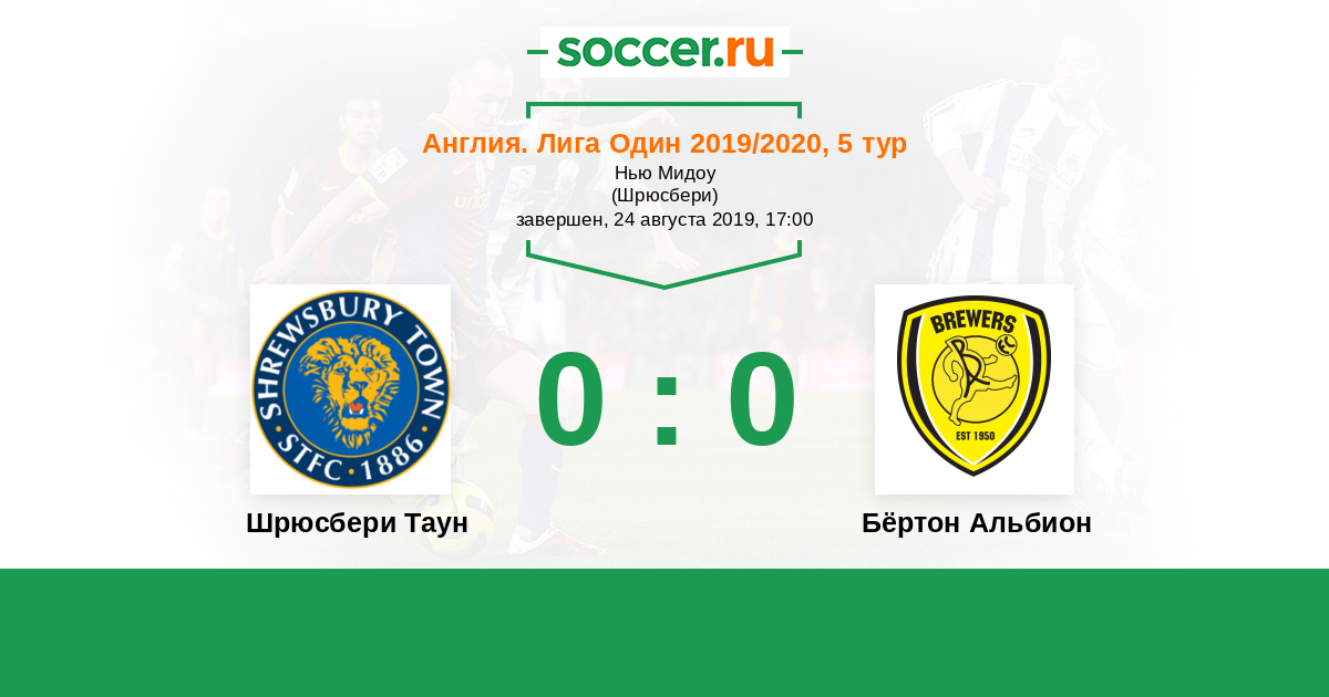 Шрюсбери Таун - Бёртон Альбион: обзор матча 24 августа 2019