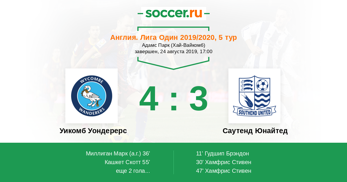 Уикомб Уондерерс - Саутенд Юнайтед: обзор матча 24 августа 2019