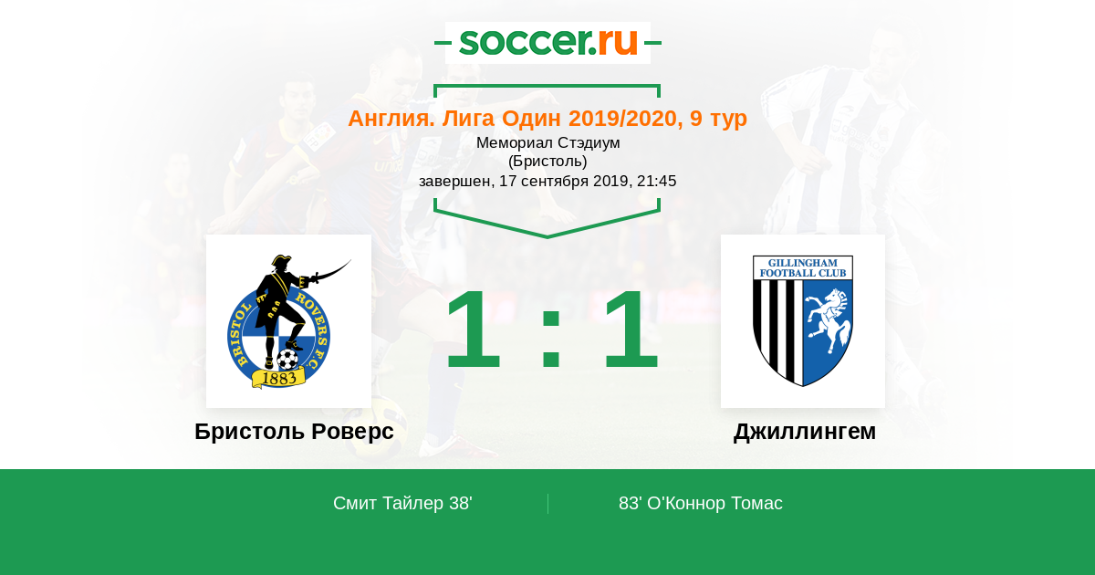 Бристоль Роверс - Джиллингем: обзор матча 17 сентября 2019