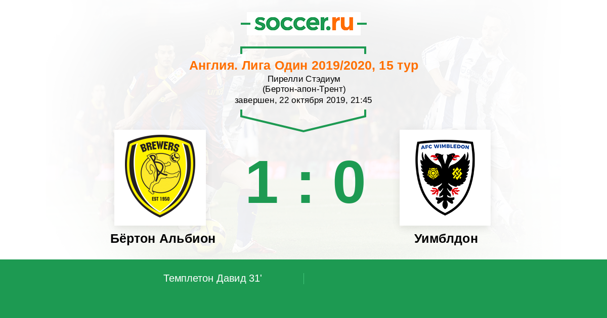 Бёртон Альбион - Уимблдон: обзор матча 22 октября 2019