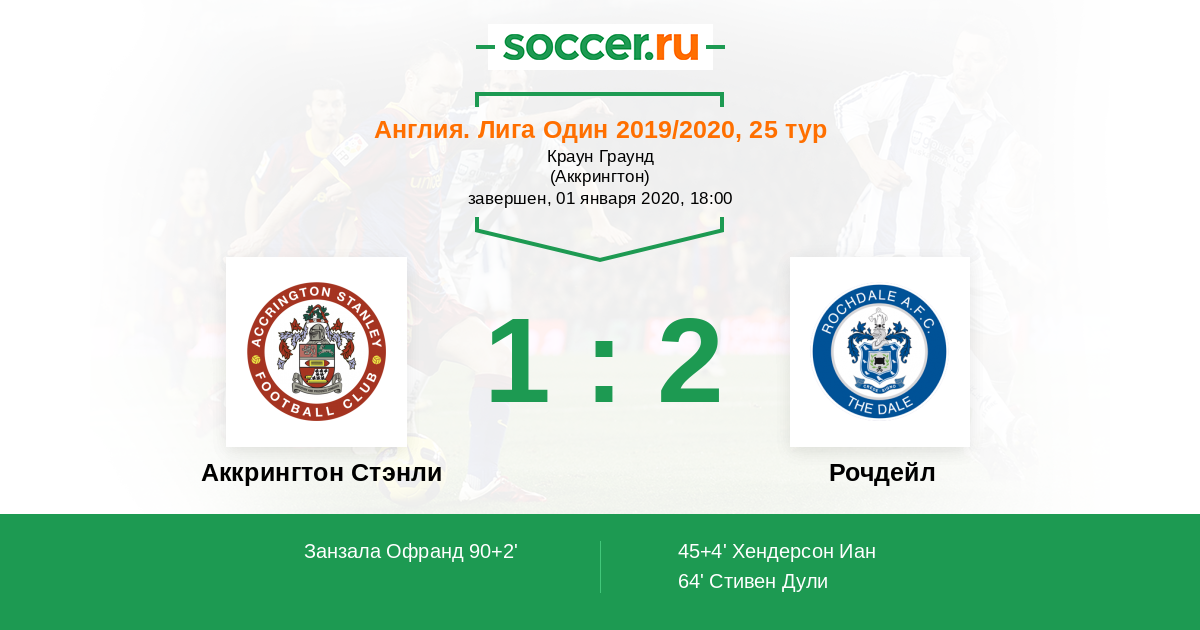 Аккрингтон Стэнли - Рочдейл: обзор матча 1 января 2020