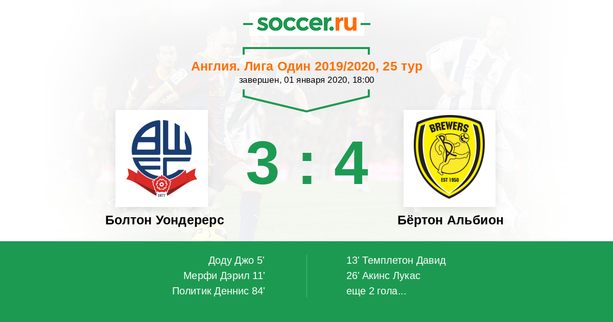 Болтон Уондерерс - Бёртон Альбион: обзор матча 1 января 2020
