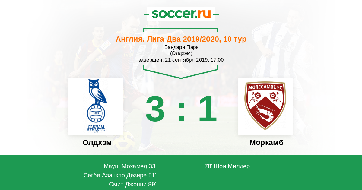 Олдхэм - Моркамб: обзор матча 21 сентября 2019