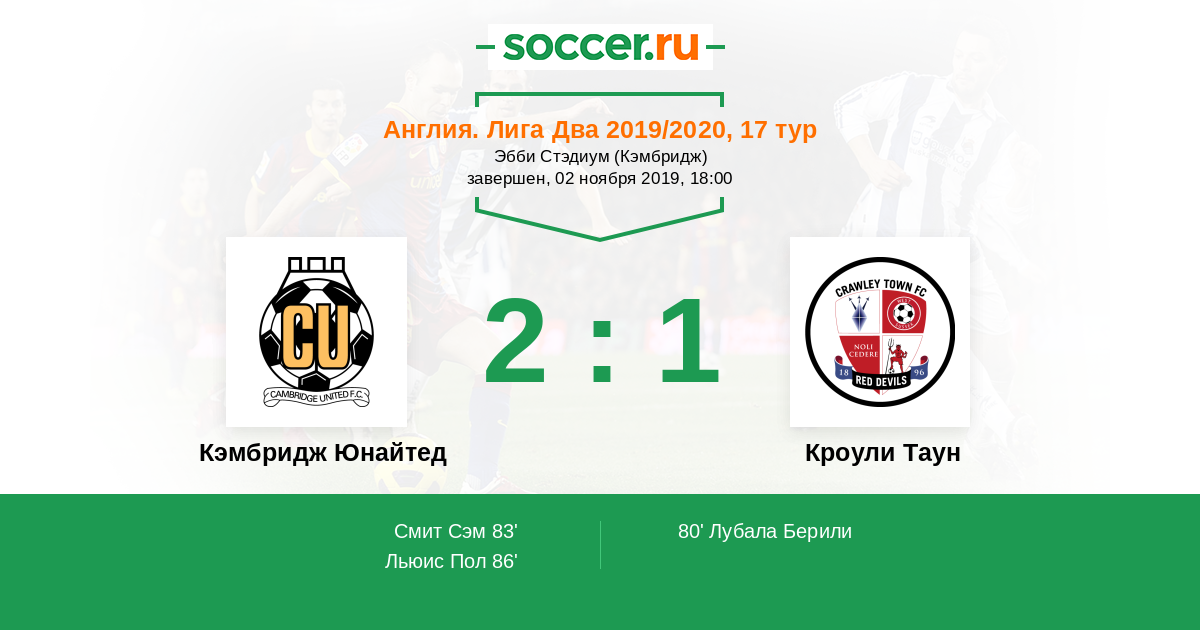 Кэмбридж Юнайтед - Кроули Таун: обзор матча 2 ноября 2019