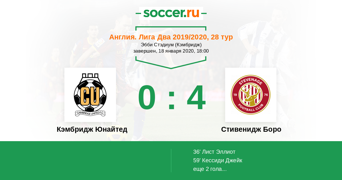 Кэмбридж Юнайтед - Стивенидж Боро: обзор матча 18 января 2020