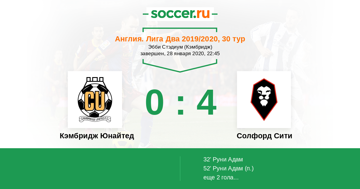 Кэмбридж Юнайтед - Солфорд Сити: обзор матча 28 января 2020