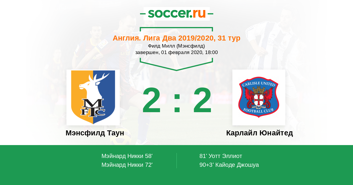 Мэнсфилд Таун - Карлайл Юнайтед: обзор матча 1 февраля 2020
