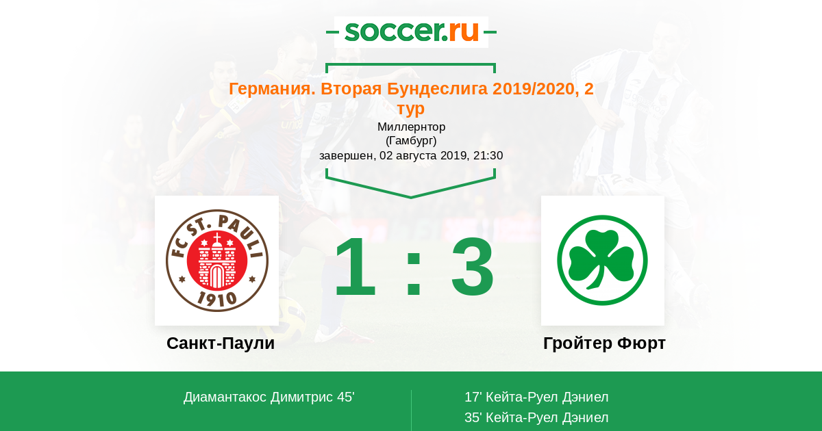 Санкт-Паули - Гройтер Фюрт: обзор матча 2 августа 2019