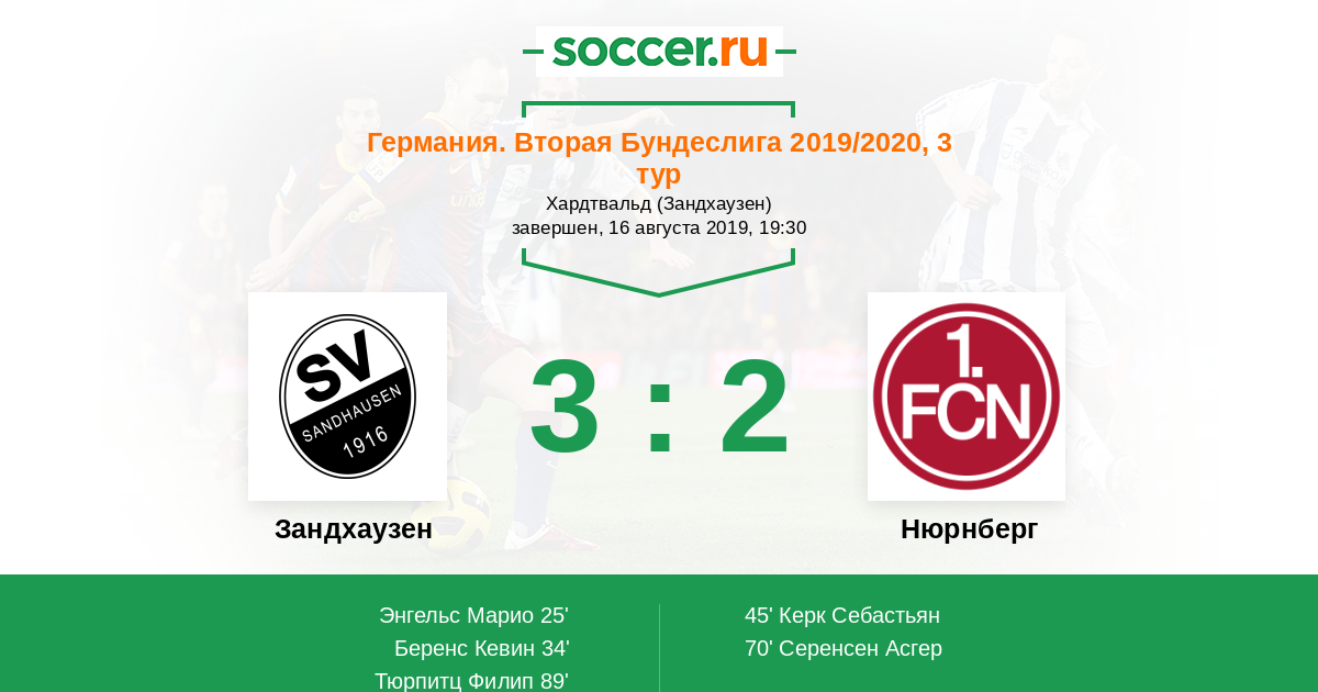 Зандхаузен - Нюрнберг: обзор матча 16 августа 2019