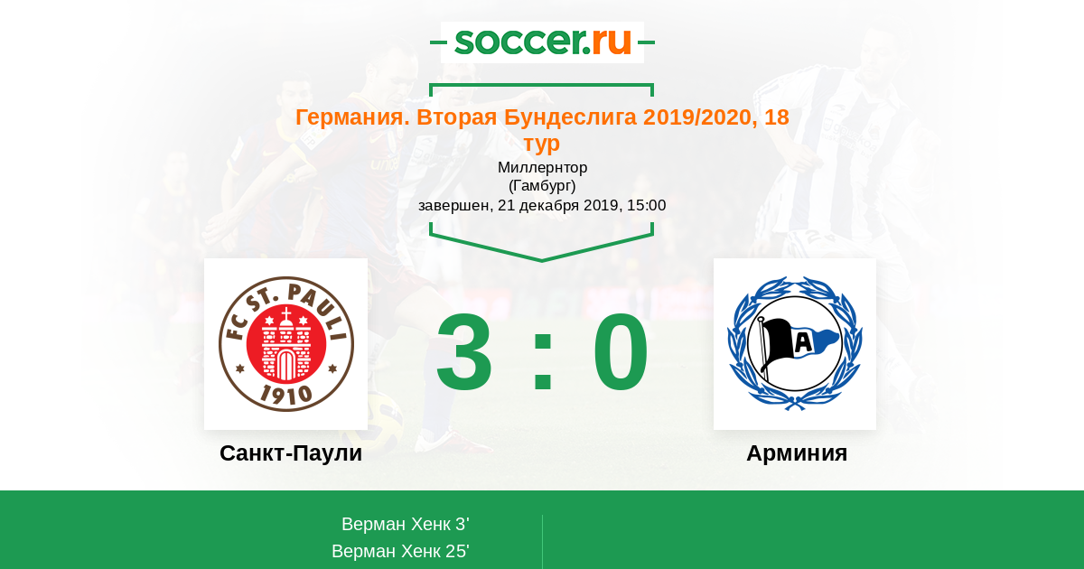 Санкт-Паули - Арминия: обзор матча 21 декабря 2019