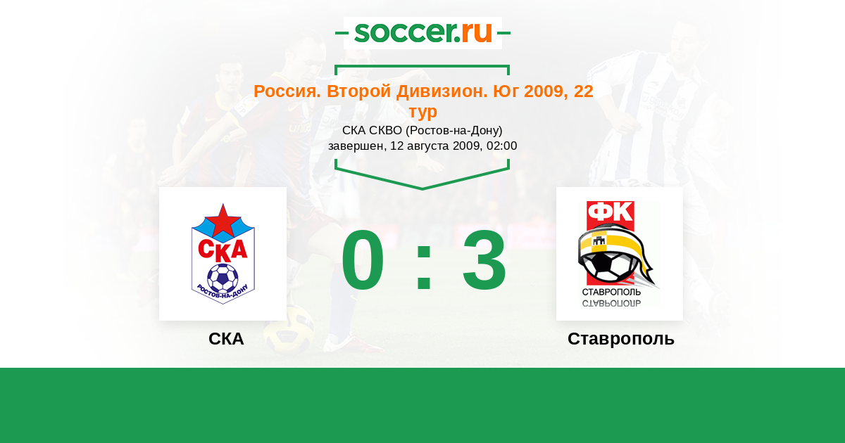 СКА - Ставрополь: обзор матча 12 августа 2009